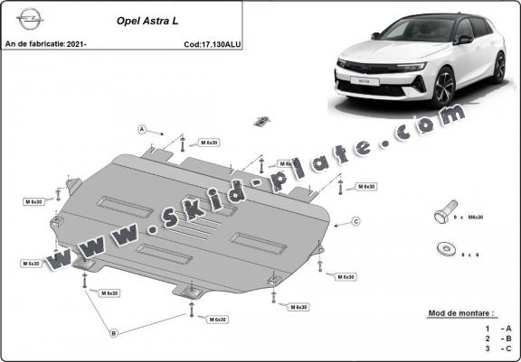 Aluminium skid plate for Opel Astra L (2001-2026)