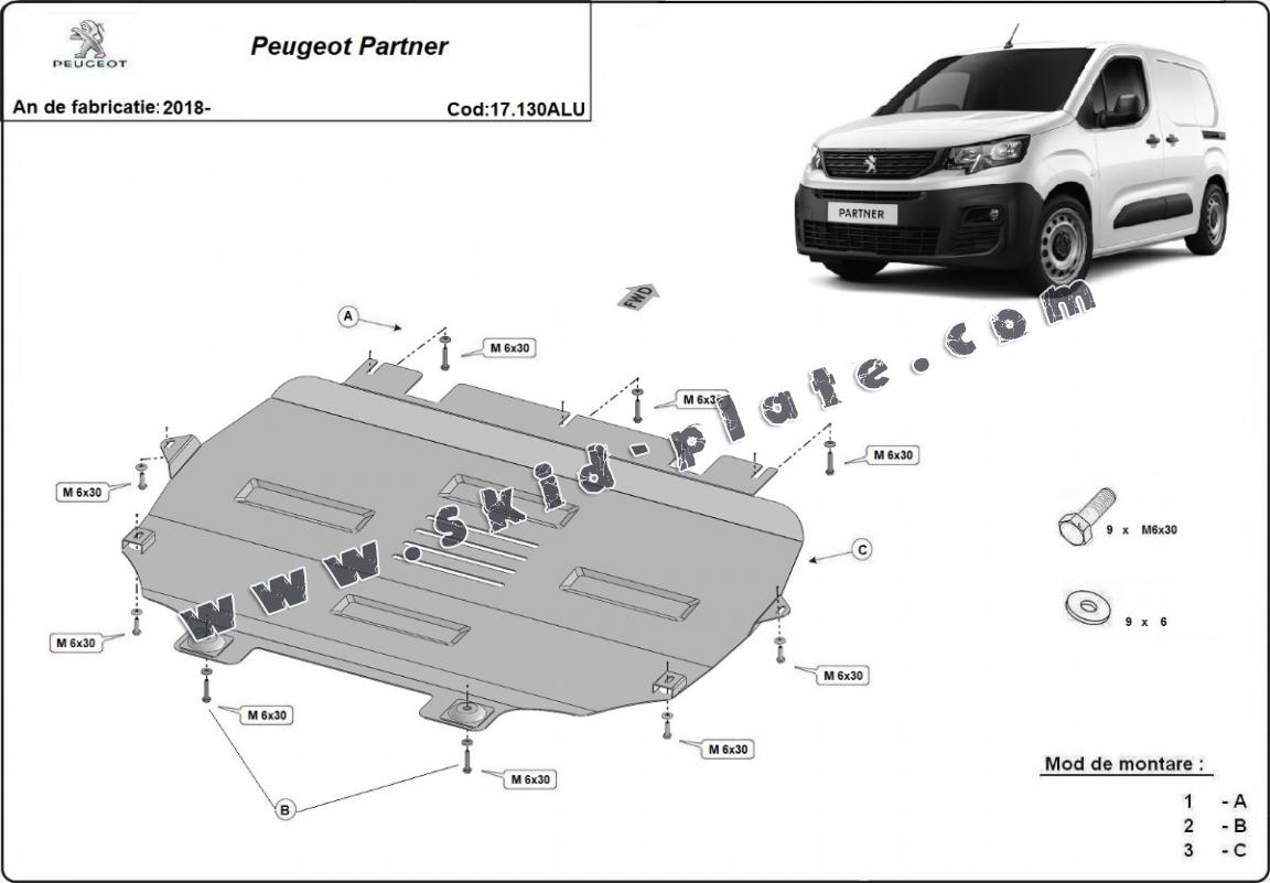 Aluminium skid plate for Peugeot Partner (2018-2026)