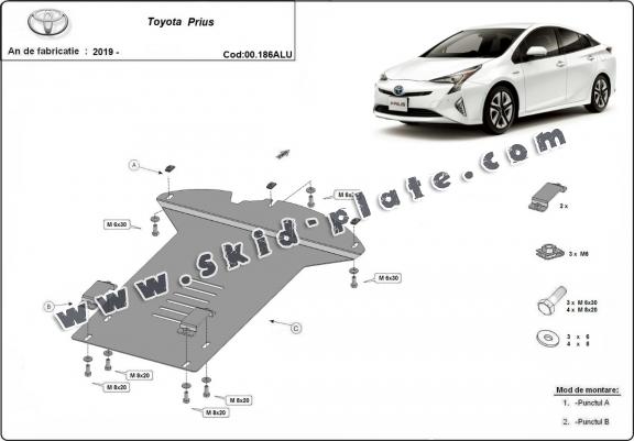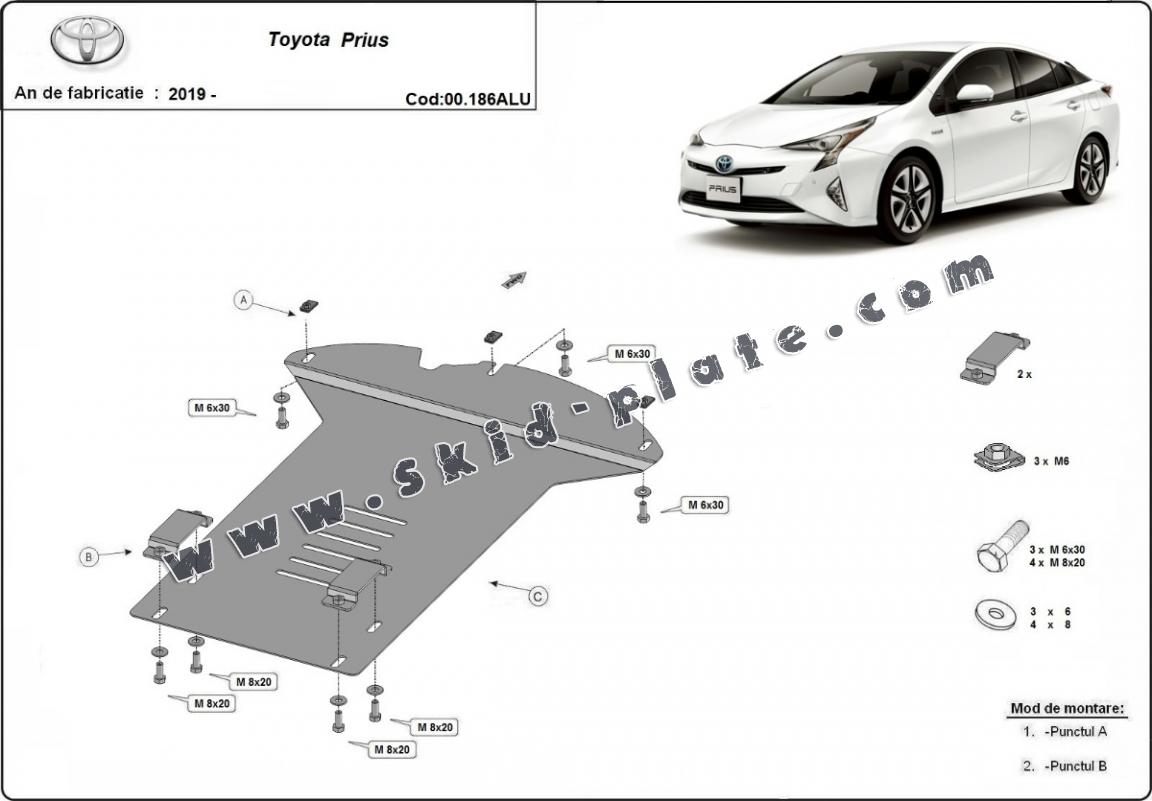Skid plate for the protection of the: Catalytic converter The skid plate is new and fits perfectly for all versions of Toyota Prius manufactured between 2019 and 2025. Made out of 3 mm thick Aluminium plate. The shields are made of aluminum, but the mounting brackets are made of steel. Screws, nuts, clips, all fastening accessories are included. All skid plates are powder coated to prevent corrosion. The exterior of the skid plate is provided with Aluminium reinforcements, which increases the resistance to impact. |
