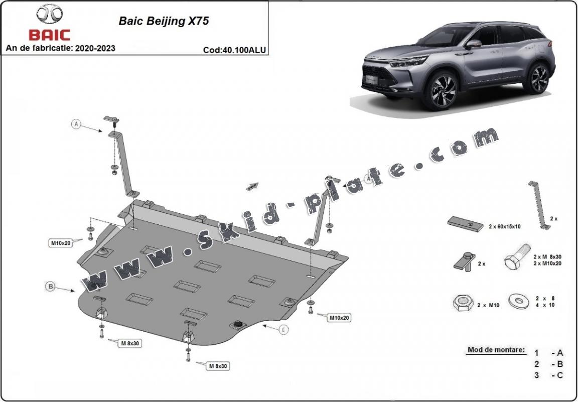 Aluminum skid plate for BAIC Beijing X75 (2020-2023)