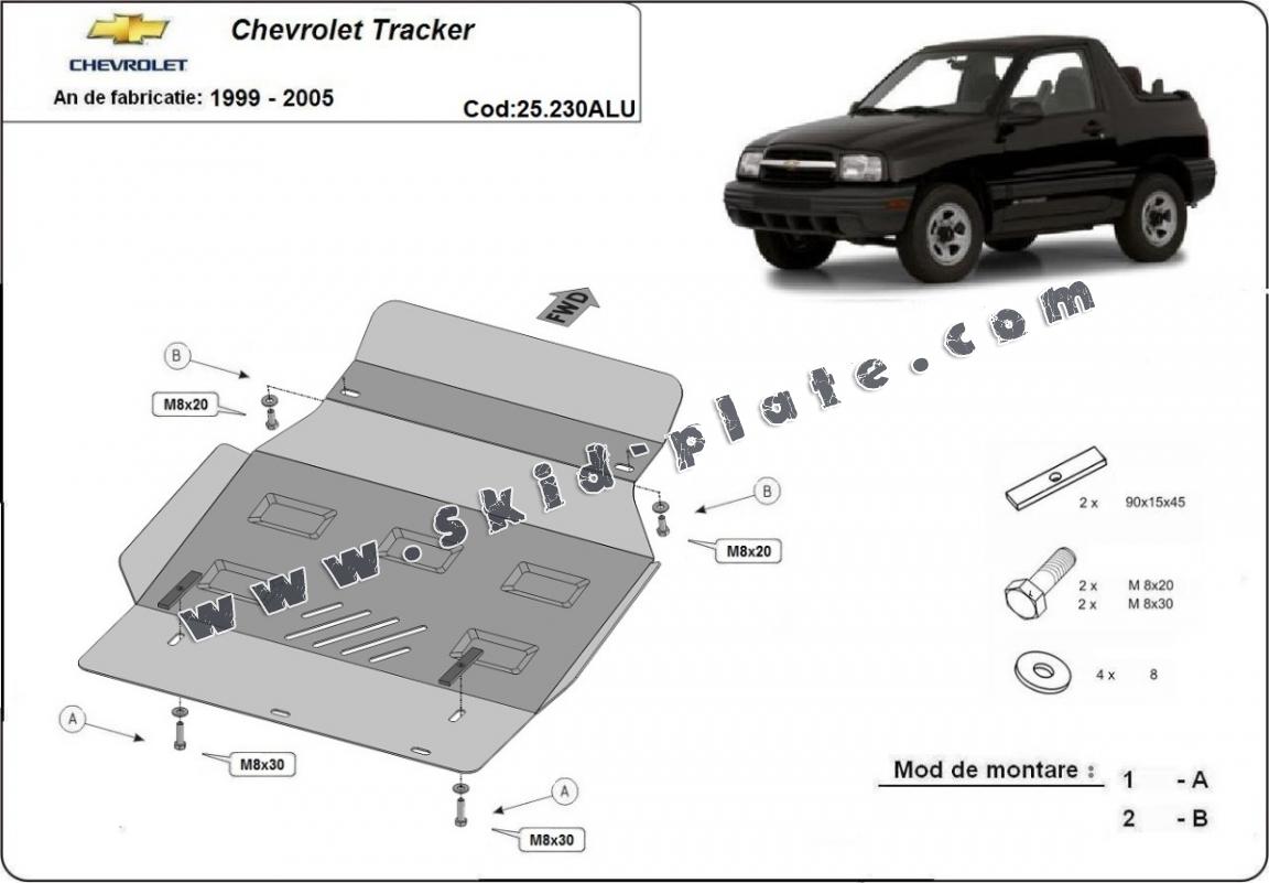 Aluminum skid plate for Chevrolet Tracker (1999-2005)