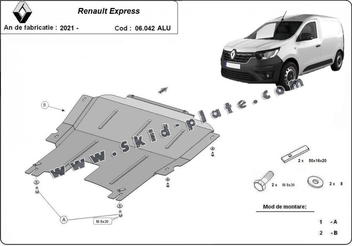 Aluminum skid plate for Renault Express (2021-2026)