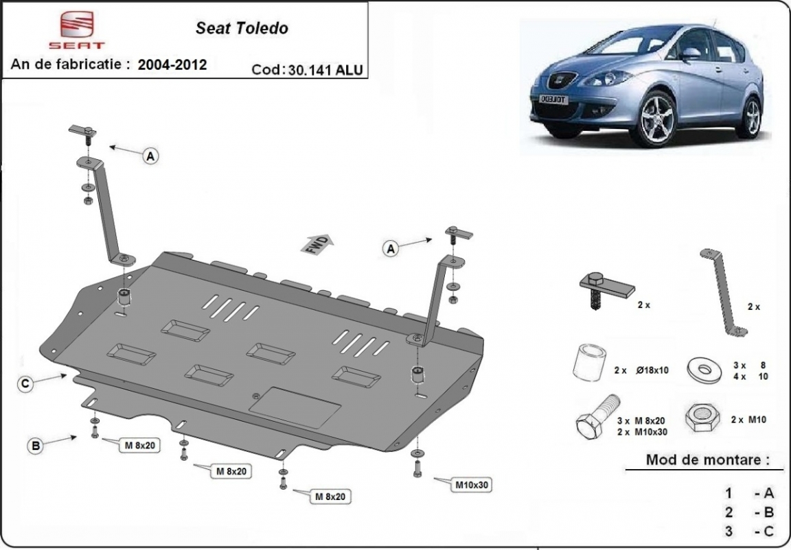 Aluminum skid plate for Seat Toledo 3 (2004-2012)