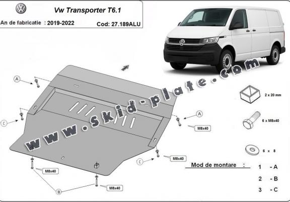Aluminum skid plate for Volkswagen Transporter T6.1 (2019-2023)