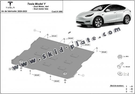 Front electric motor skid plate for Tesla Model Y AWD (2020-2023)
