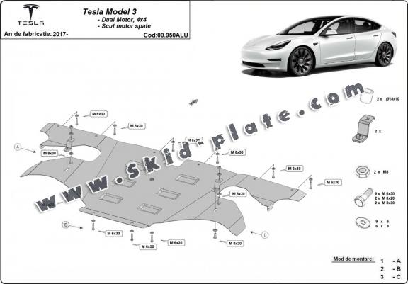 Rear electric aluminum motor skid plate - Tesla Model 3 AWD (2017-2026)