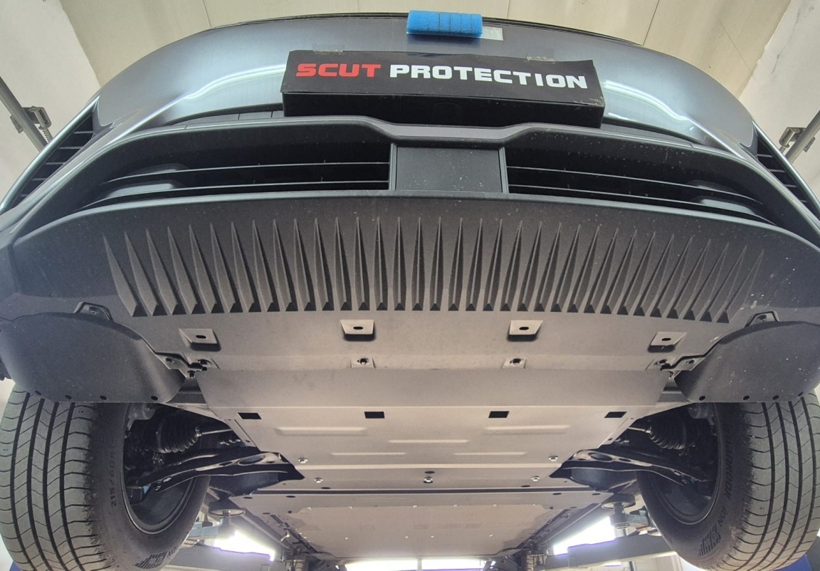 Skid plate for the protection of the: engine, gearbox, electric power steering gear, Front differential The skid plate is new and fits perfectly for all versions of BYD Atto 2 manufactured between 2025 and 2026. Made out of 2 mm thick Steel plate. Screws, nuts, clips, all fastening accessories are included. All skid plates are powder coated to prevent corrosion. The exterior of the skid plate is provided with Steel reinforcements, which increases the resistance to impact. |