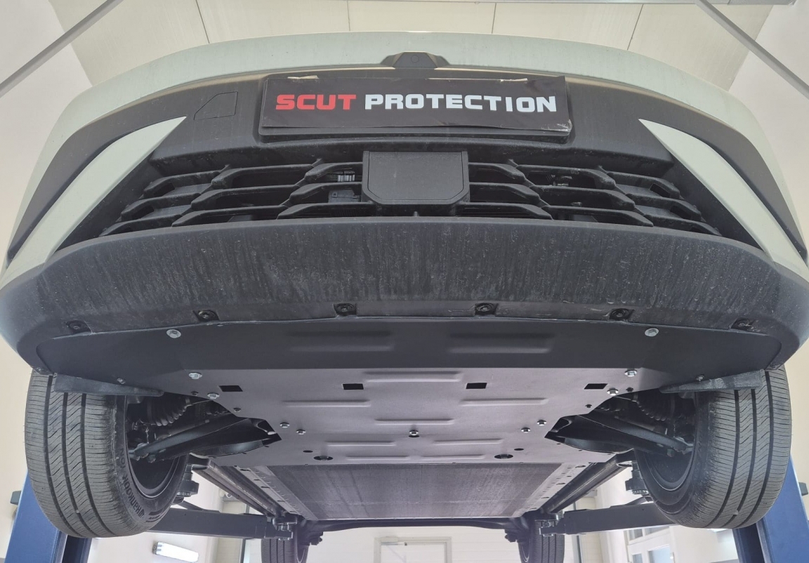 Skid plate for the protection of the: engine, front bumper, gearbox, radiator, Front differential The skid plate is new and fits perfectly for all versions of BYD Dolphin Surf manufactured between 2025 and 2026. Made out of 2 mm thick Steel plate. Screws, nuts, clips, all fastening accessories are included. All skid plates are powder coated to prevent corrosion. The exterior of the skid plate is provided with Steel reinforcements, which increases the resistance to impact. |
