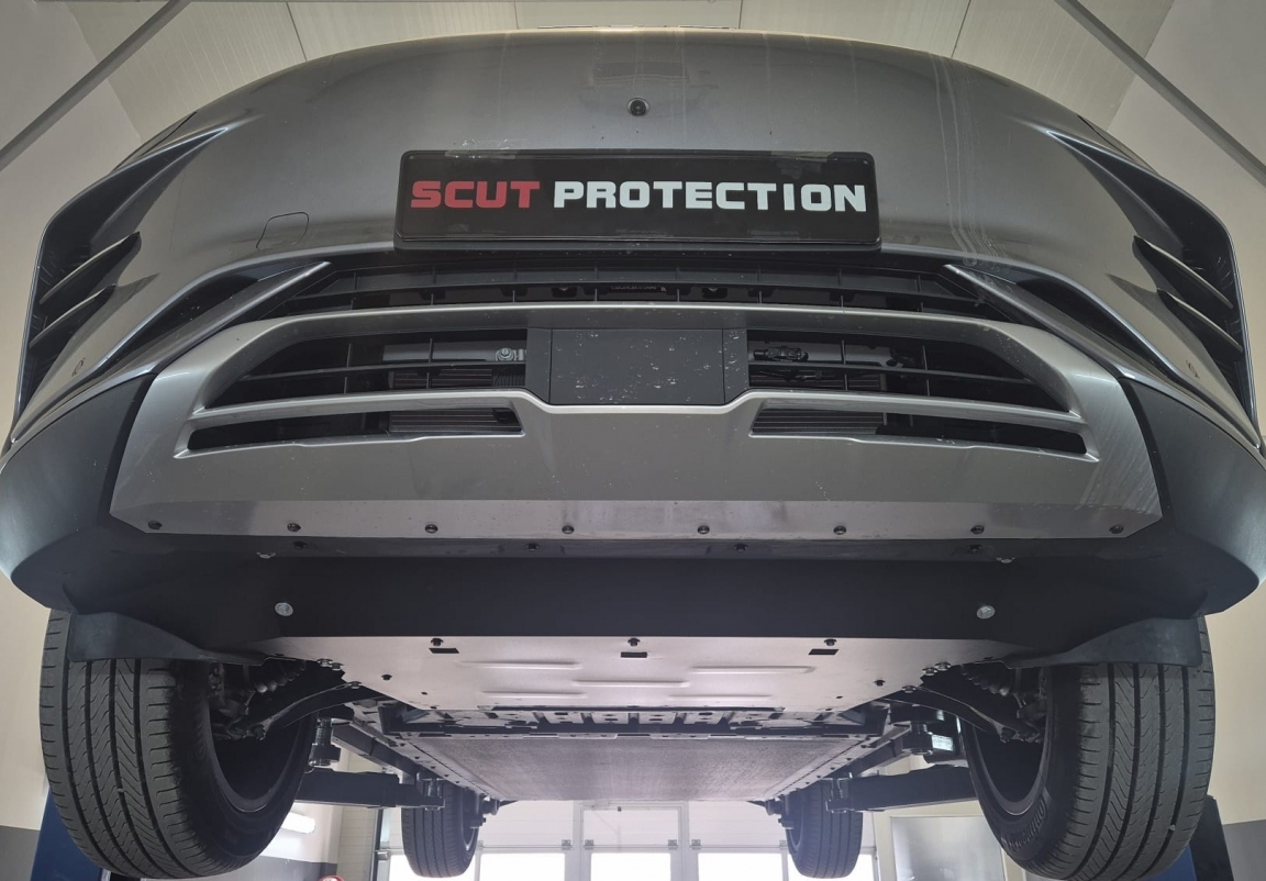 Skid plate for the protection of the: engine, gearbox, radiator, front bumper The skid plate is new and fits perfectly for all versions of BYD Seal U manufactured between 2024 and 2026. Made out of 2 mm thick Steel plate. Screws, nuts, clips, all fastening accessories are included. All skid plates are powder coated to prevent corrosion. The exterior of the skid plate is provided with Steel reinforcements, which increases the resistance to impact. |