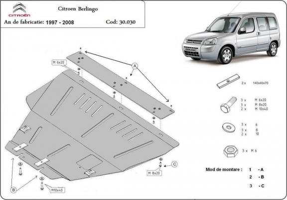 Steel skid plate for Citroen Berlingo (1997-2008)