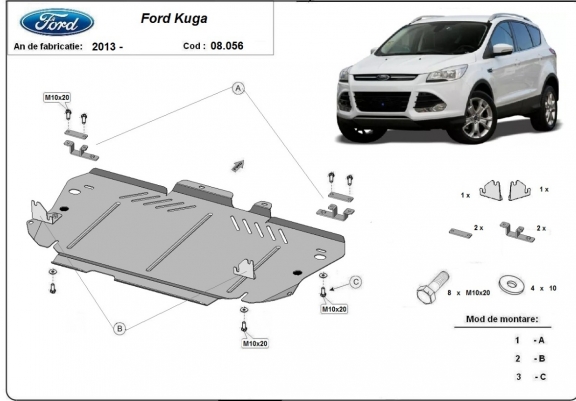 Steel skid plate for Ford Kuga (2013-2019)
