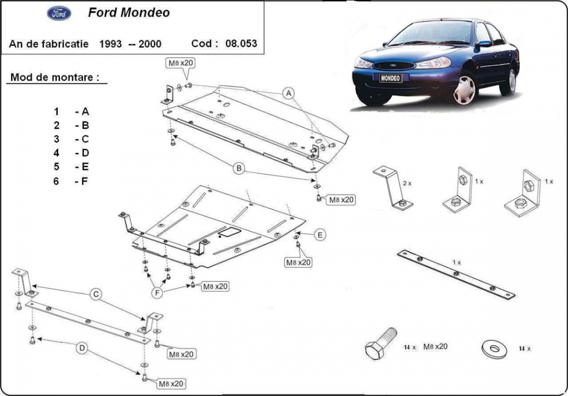 Steel skid plate for Ford Mondeo 1,2 (1992-2000)