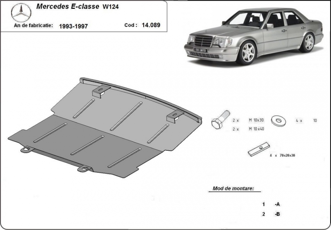 Steel skid plate for Mercedes E-Classe W124 (1993-1997)