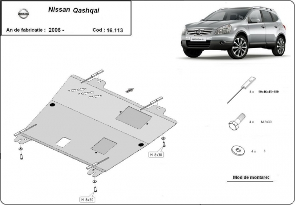 Steel skid plate for Nissan Qashqai J10 (2006-2013)