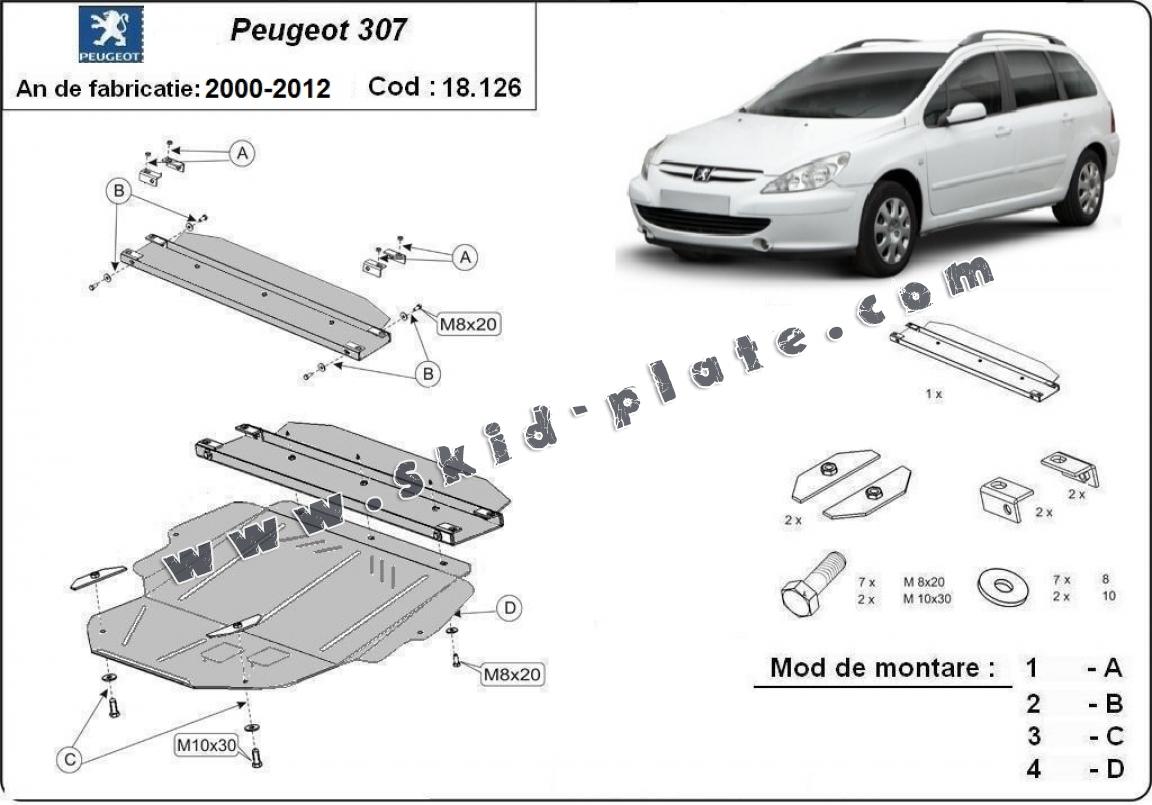Steel skid plate for Peugeot 307 (2001-2008)