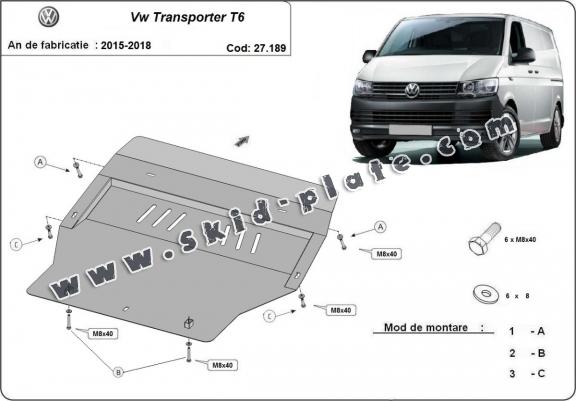 Steel skid plate for Volkswagen Transporter T6