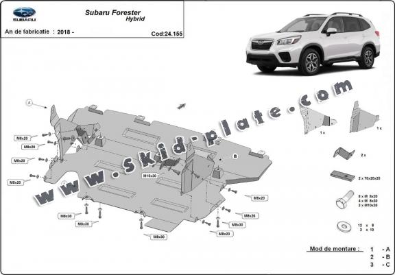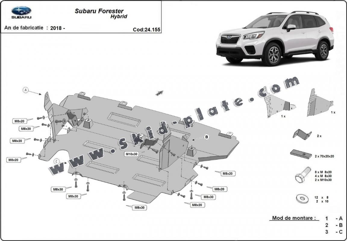 Skid plate for the protection of the: rear differential The skid plate is new and fits perfectly for all versions of Subaru Forester manufactured between 2018 and 2025. Made out of 2 mm thick Steel plate. Screws, nuts, clips, all fastening accessories are included. All skid plates are powder coated to prevent corrosion. The exterior of the skid plate is provided with Steel reinforcements, which increases the resistance to impact. |