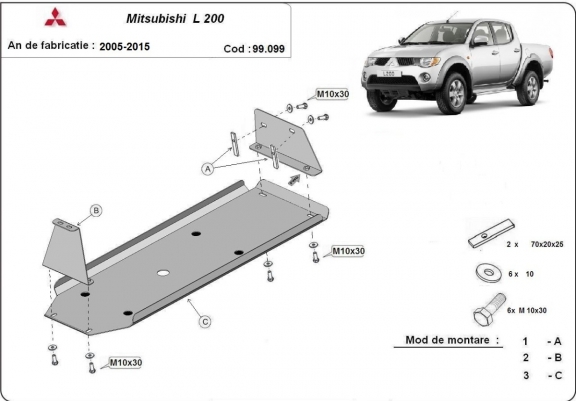 Steel skid plate for the protection of the engine and the radiator for Mitsubishi L 200