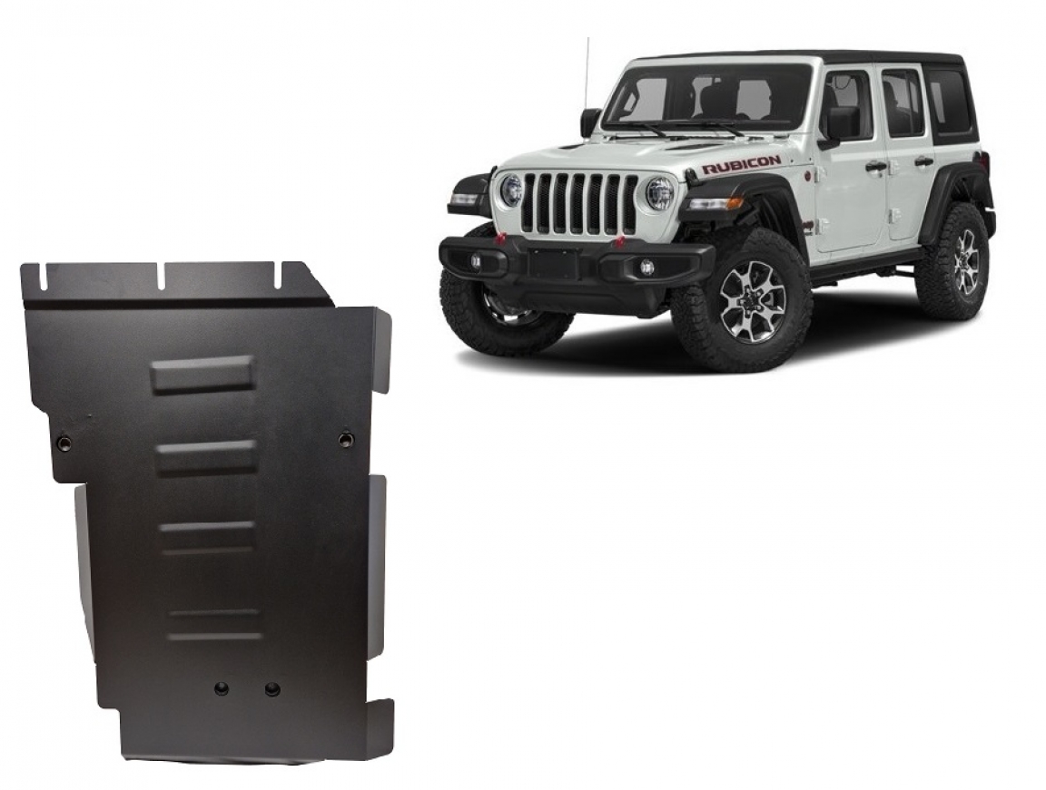 Skid plate for the protection of the: gearbox The skid plate is new and fits perfectly for all versions of Jeep Wrangler manufactured between 2017 and 2026. Made out of 2 mm thick Steel plate. Screws, nuts, clips, all fastening accessories are included. All skid plates are powder coated to prevent corrosion. The exterior of the skid plate is provided with Steel reinforcements, which increases the resistance to impact. |