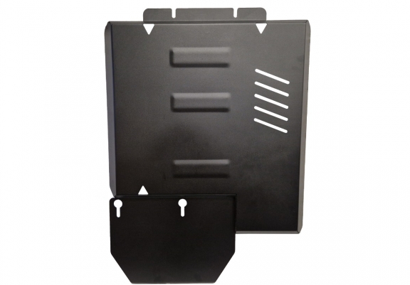 Skid plate for the protection of the: gearbox, Transfer case The skid plate is new and fits perfectly for the Suzuki X90, with the following engine/drive versions: 2.0 petrol - manufactured between 1988 and 1999. Made out of 2.5 mm thick Steel plate. Screws, nuts, clips, all fastening accessories are included. All skid plates are powder coated to prevent corrosion. The exterior of the skid plate is provided with Steel reinforcements, which increases the resistance to impact. |