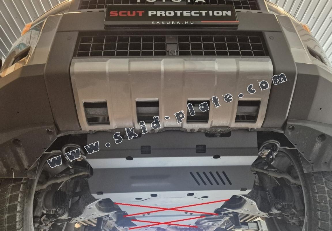 Skid plate for the protection of the: radiator The skid plate is new and fits perfectly for all versions of Toyota Land Cruiser 250 manufactured between 2024 and 2026. Made out of 3 mm thick Steel plate. Screws, nuts, clips, all fastening accessories are included. All skid plates are powder coated to prevent corrosion. The exterior of the skid plate is provided with Steel reinforcements, which increases the resistance to impact. |