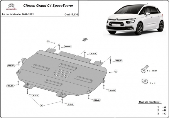 Steel skid plate for Citroen Grand C4 SpaceTourer (2018-2022)