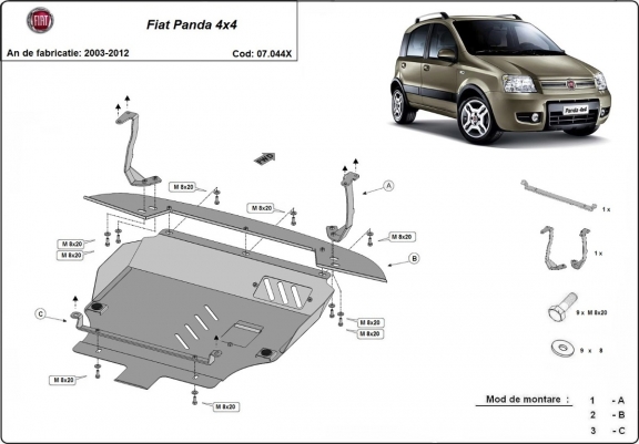 Steel skid plate for Fiat Panda 4x4 (2003-2012)