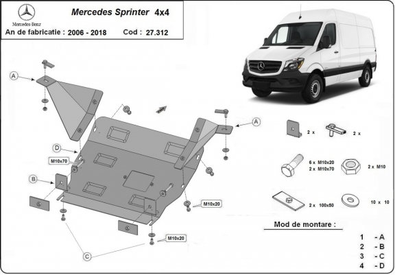 Steel skid plate for Mercedes Sprinter 906 4x4