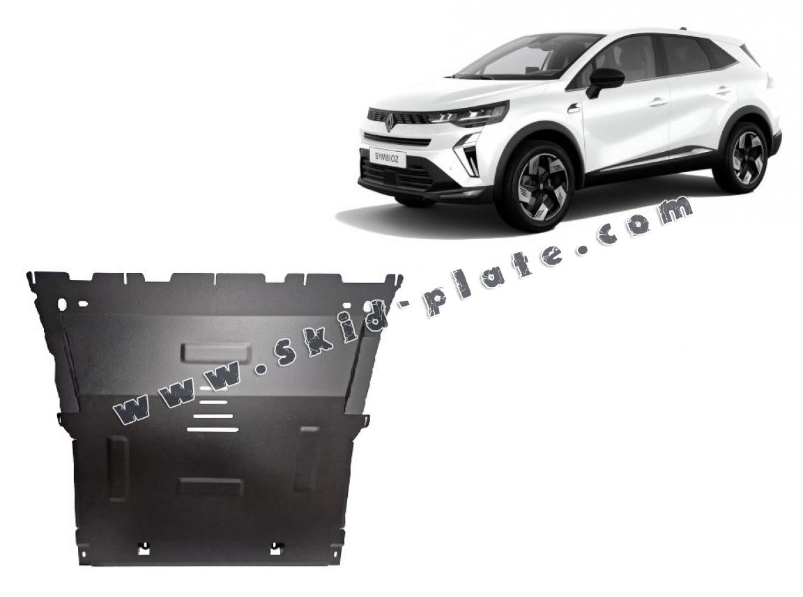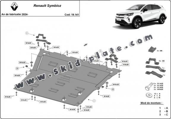 Skid plate for the protection of the: engine, gearbox, radiator The skid plate is new and fits perfectly for all versions of Renault Symbioz manufactured between 2024 and 2025. Made out of 2 mm thick Steel plate. Screws, nuts, clips, all fastening accessories are included. All skid plates are powder coated to prevent corrosion. The exterior of the skid plate is provided with Steel reinforcements, which increases the resistance to impact. |
