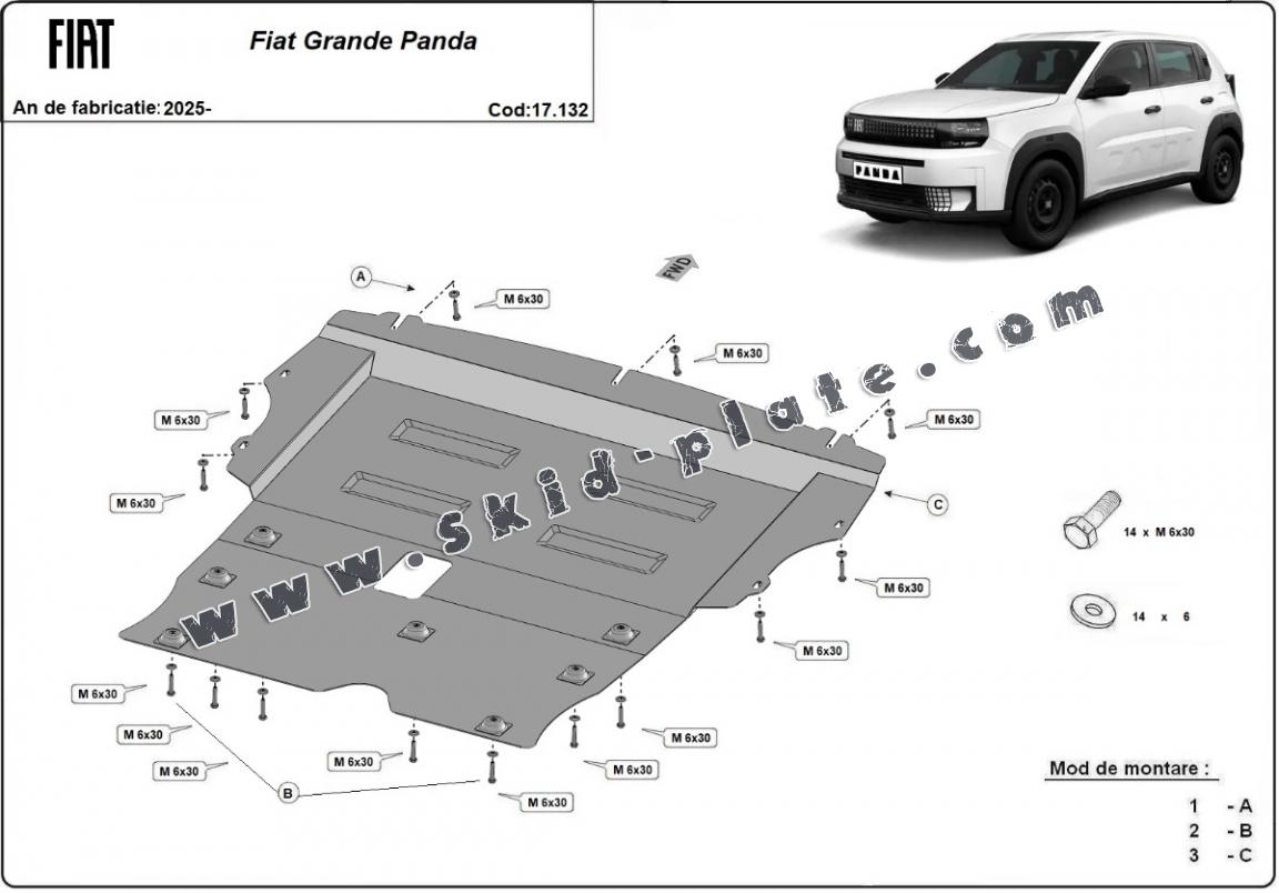 Steel skid plate for the protection of the engine and the gearbox for Fiat Grande Panda (2025-2026)