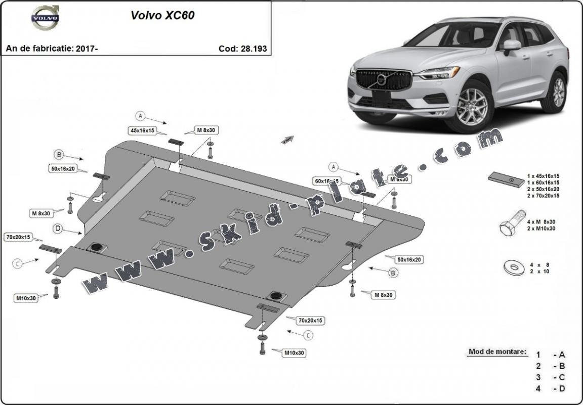 Skid plate for the protection of the: engine, gearbox The skid plate is new and fits perfectly for all versions of Volvo XC60 manufactured between 2017 and 2025. Made out of 2 mm thick Steel plate. Screws, nuts, clips, all fastening accessories are included. All skid plates are powder coated to prevent corrosion. The exterior of the skid plate is provided with Steel reinforcements, which increases the resistance to impact. |